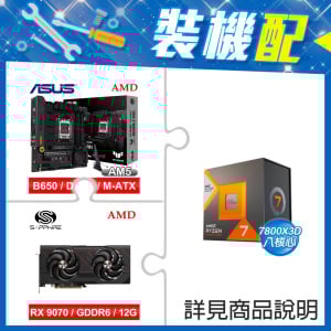 ☆裝機配★ AMD R7 7800X3D+華碩 ROG STRIX B650-A GAMING WIFI ATX主機板+藍寶石 PULSE 脈動 RX 9070 GRE GAMING 12GB 顯示卡