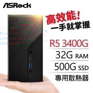 華擎系列【mini小鹿】AMD3400G四核 迷你電腦(32G/500G SSD)《Mini X300》