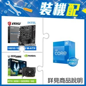 ☆裝機配★ i5-12400F+微星 PRO H610M-S D4 M-ATX主機板+ZOTAC RTX3050 6G GDDR6 Solo 顯示卡