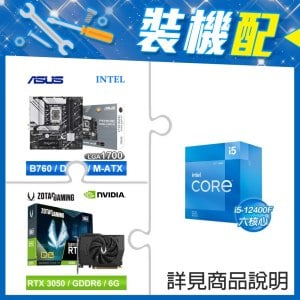 ☆裝機配★ i5-12400F+華碩 PRIME B760M-A WIFI D4-CSM 主機板+ZOTAC RTX3050 6G GDDR6 Solo 顯示卡