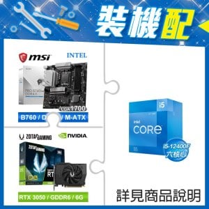 ☆裝機配★ i5-12400F+微星 PRO B760M-A DDR4 II MATX主機板+ZOTAC RTX3050 6G GDDR6 Solo 顯示卡