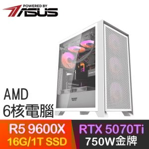 華碩系列【一級玩家】R5 9600X 6核 RTX5070Ti 電腦主機(16G/1T SSD)