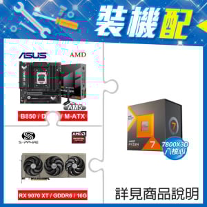 ☆裝機配★ AMD R7 7800X3D+華碩 TUF GAMING B850M-PLUS WIFI MATX主機板+藍寶石 PURE 極地 RX 9070 XT GAMING OC 16GB 顯示卡