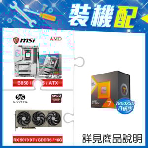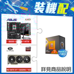 ☆裝機配★ AMD R7 7800X3D+華碩 TUF GAMING B850-PLUS WIFI ATX主機板+藍寶石 NITRO+ 氮動 RX 9070 XT GAMING OC 16GB 顯示卡
