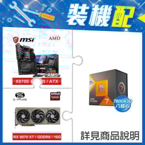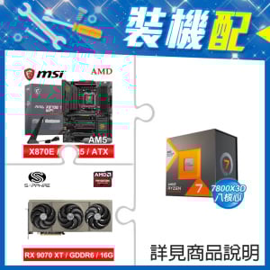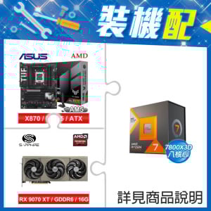 ☆裝機配★ AMD R7 7800X3D+華碩 TUF GAMING X870-PLUS WIFI ATX主機板+藍寶石 NITRO+ 氮動 RX 9070 XT GAMING OC 16GB 顯示卡