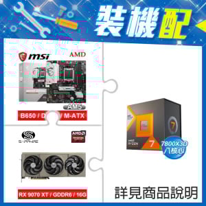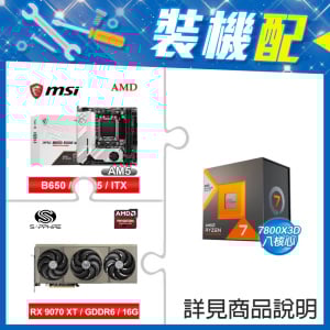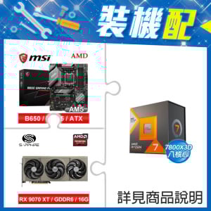 ☆裝機配★ AMD R7 7800X3D+華碩 TUF GAMING B650-PLUS WIFI ATX主機板+藍寶石 NITRO+ 氮動 RX 9070 XT GAMING OC 16GB 顯示卡