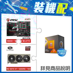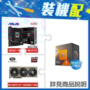 ☆裝機配★ AMD R7 7800X3D+華碩 TUF GAMING B650M-E WIFI D5 MATX主機板+藍寶石 PURE 極地 RX 9070 XT GAMING OC 16GB 顯示卡