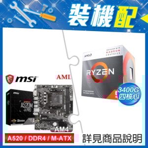 ☆裝機配★ AMD R5 3400G+微星 A520M-A PRO M-ATX主機板