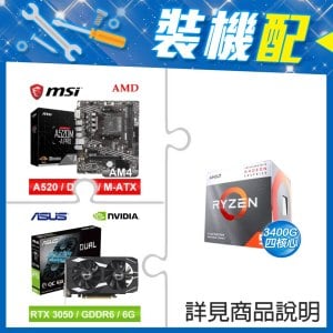 ☆裝機配★ AMD R5 3400G+微星 A520M-A PRO M-ATX主機板+華碩 DUAL-RTX3050-O6G 顯示卡