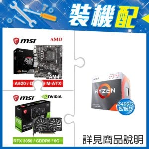 ☆裝機配★ AMD R5 3400G+微星 A520M-A PRO M-ATX主機板+微星 RTX 3050 VENTUS 2X 6G OC 顯示卡