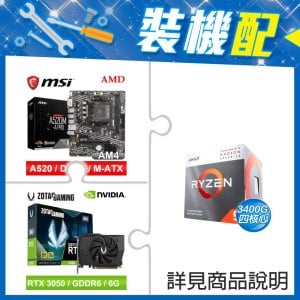 ☆裝機配★ AMD R5 3400G+微星 A520M-A PRO M-ATX主機板+ZOTAC RTX3050 6G GDDR6 Solo 顯示卡