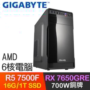 技嘉系列【藍寶石2號】R5 7500F六核 RX7650GRE 電競電腦(16G/1T SSD)