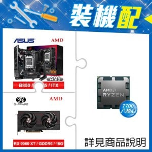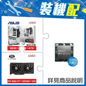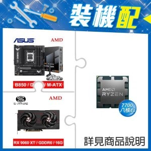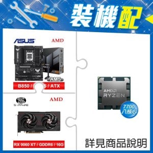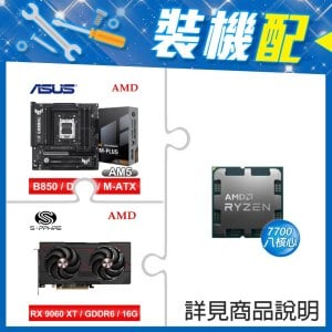 ☆裝機配★ AMD R7 7700 MPK+華碩 TUF GAMING B850-PLUS WIFI ATX主機板+藍寶石 PULSE 脈動 RX 9060 XT GAMING OC 16GB 顯示卡