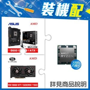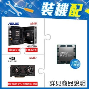 ☆裝機配★ AMD R7 7700 MPK+華碩 TUF GAMING B650-PLUS WIFI ATX主機板+藍寶石 PULSE 脈動 RX 9060 XT GAMING OC 16GB 顯示卡