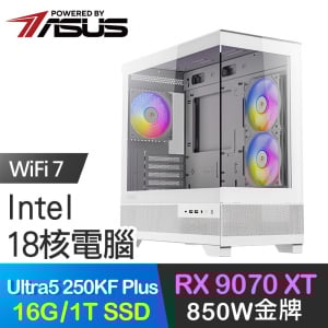華碩系列【元素之潮】Ultra5 250KF Plus 18核 RX9070XT 電腦主機(16G/1TB SSD)