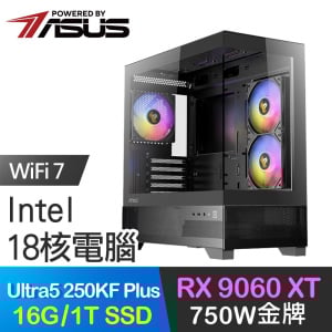 華碩系列【死寂幽魂】Ultra5 250KF Plus 18核 RX9060XT 電腦主機(16G/1TB SSD)