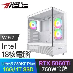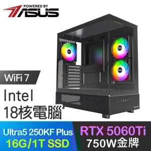 華碩系列【虛空流瀉】Ultra5 250KF Plus 18核 RTX5060Ti 電腦主機(16G/1TB SSD)