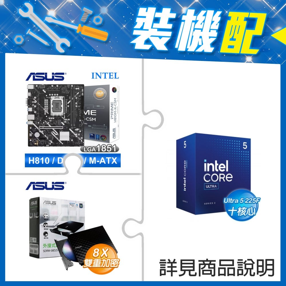 ☆裝機配★ Core U5 225F+華碩 PRIME H810M-K-CSM D5 MATX主機板+華碩 SDRW-08D2S-U 外接式燒錄機《黑》