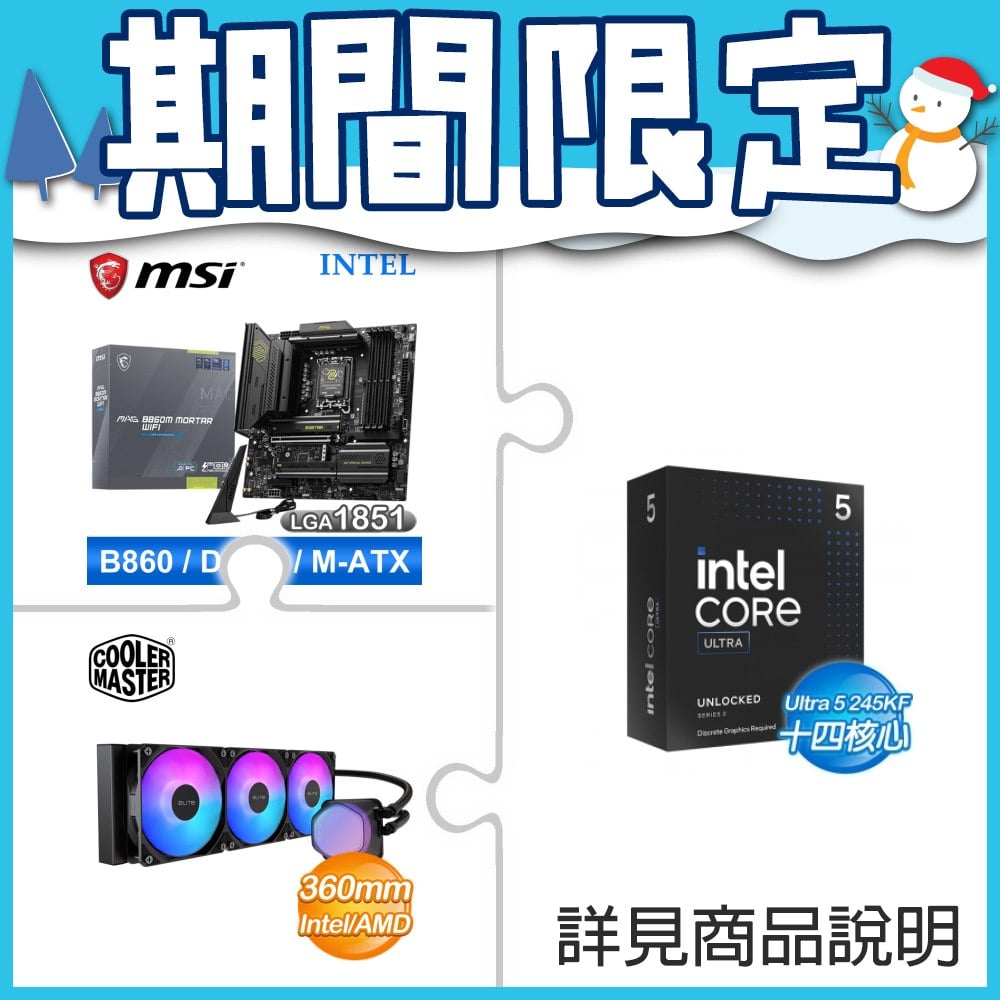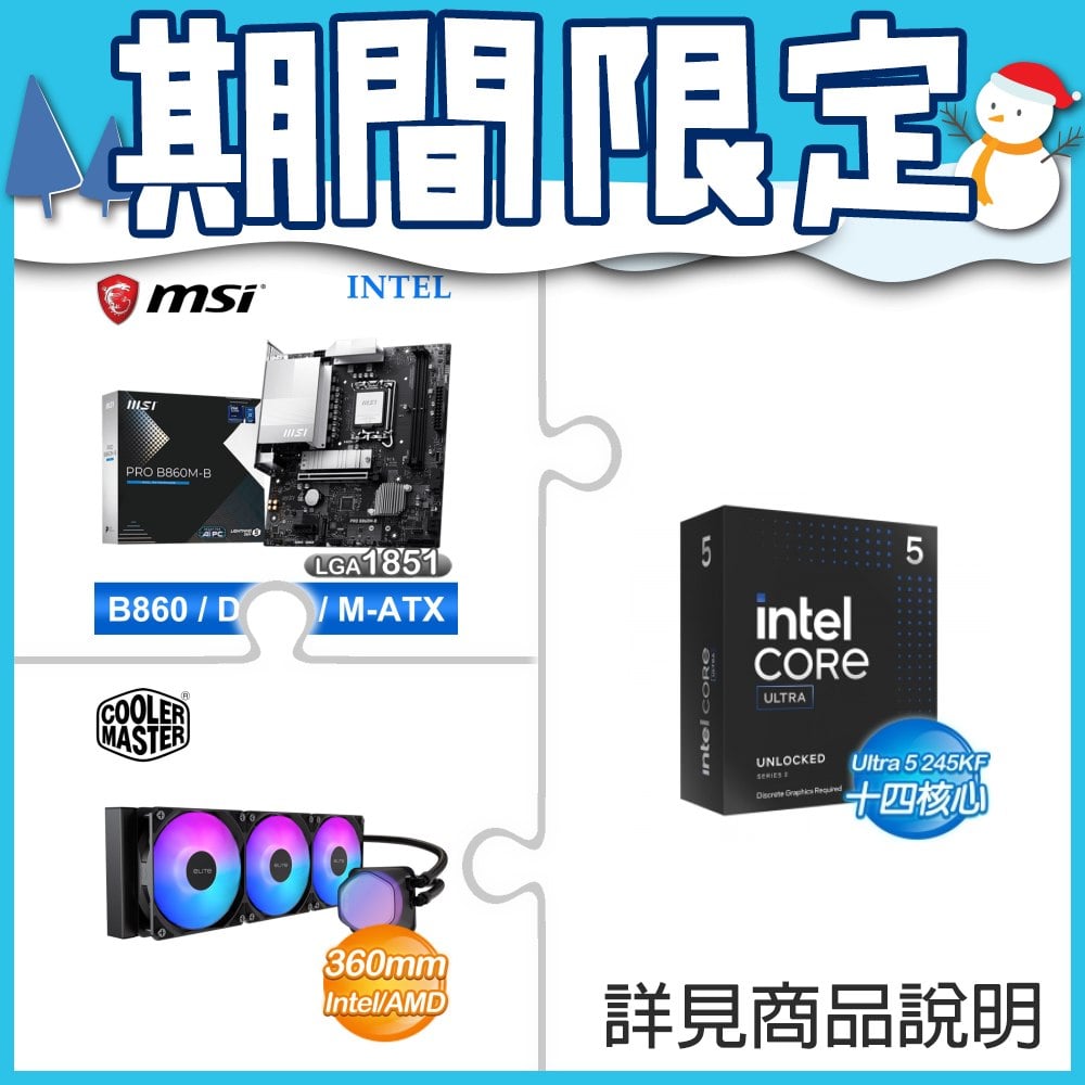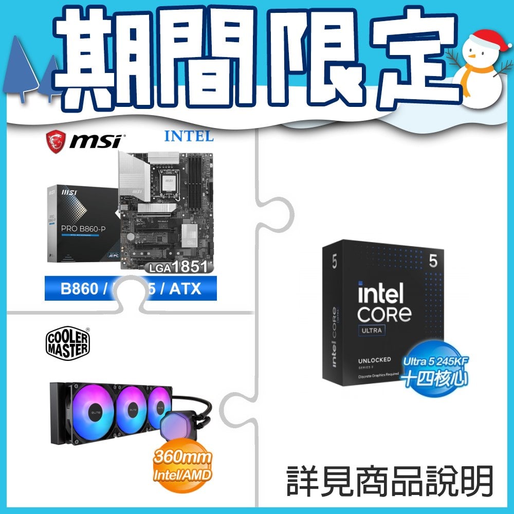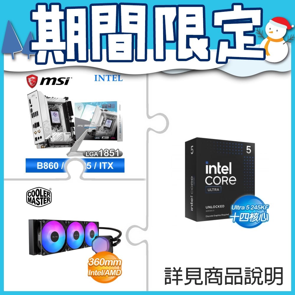 ☆超頻新戰力★ Core U5 245KF+微星 MPG B860I EDGE TI WIFI LGA1851主機板(ITX/3+2年保) +酷碼 EliteLiquid 360 ARGB 水冷散熱器