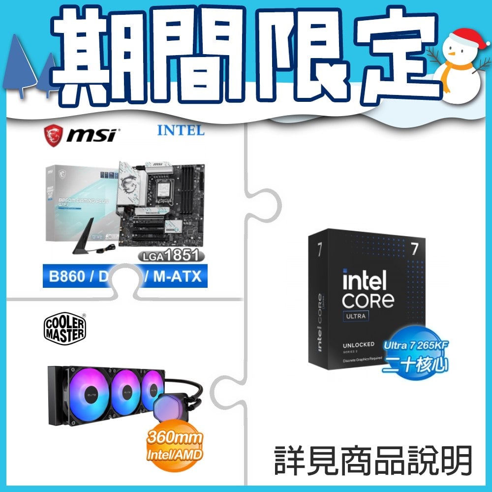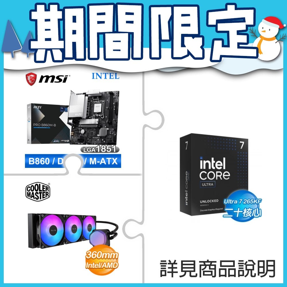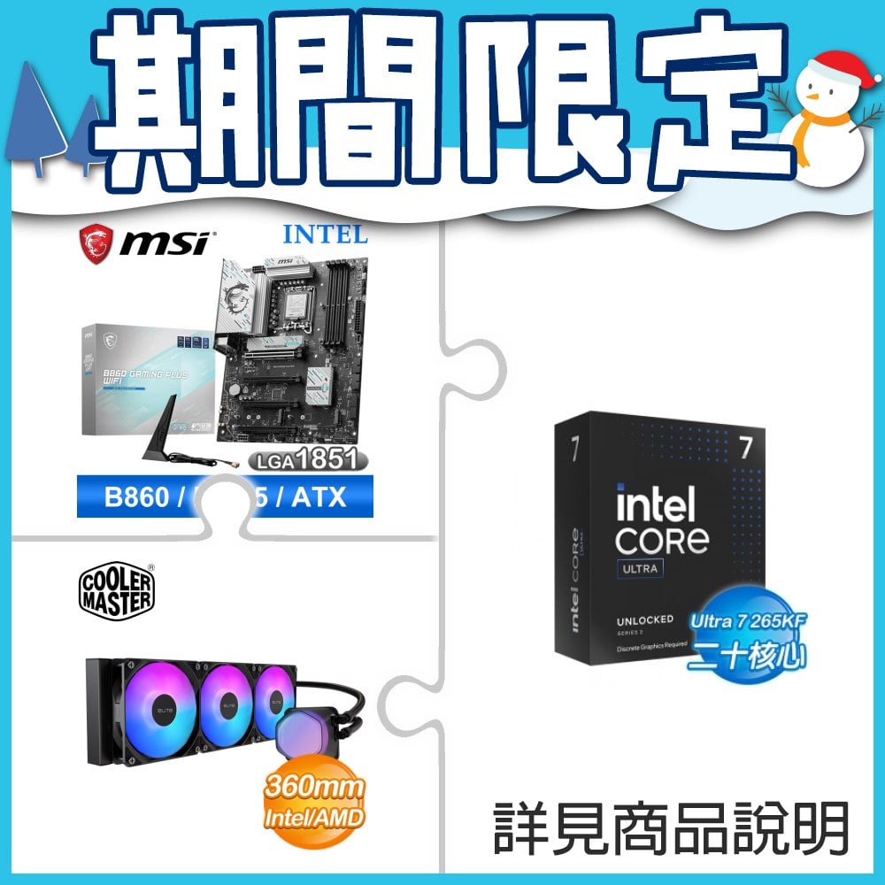 ☆超頻新戰力★ Core U7 265KF+微星 MPG B860I EDGE TI WIFI LGA1851主機板(ITX/3+2年保) +酷碼 EliteLiquid 360 ARGB 水冷散熱器
