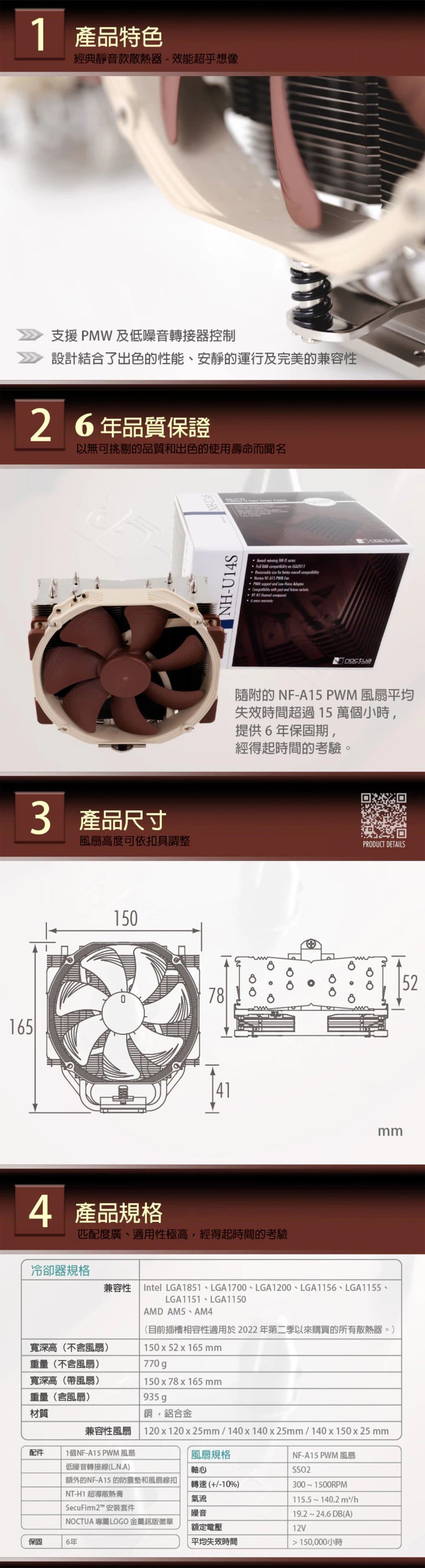 Noctua 貓頭鷹 NH-U14S DX-4677 6導管 單塔雙風扇 CPU散熱器(高16.5/6年保)
