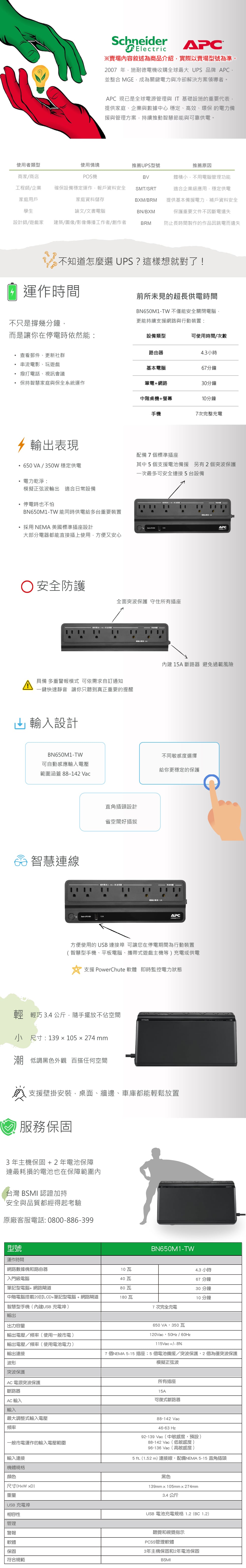 APC 650VA Off-Line 離線式 UPS不斷電系統 (BN650M1-TW)