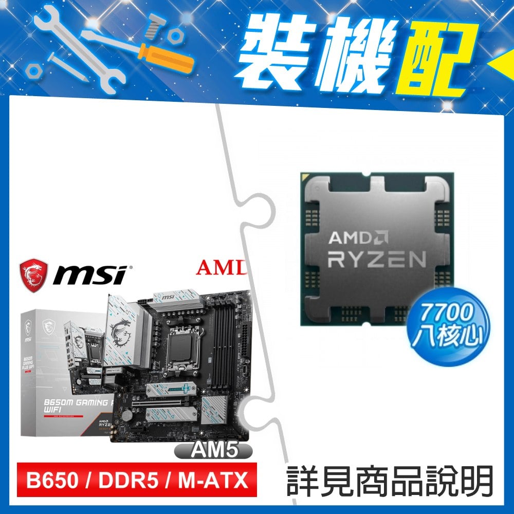 ☆裝機配★ AMD R7 7700 MPK+微星 B650M GAMING PLUS WIFI D5 MATX主機板