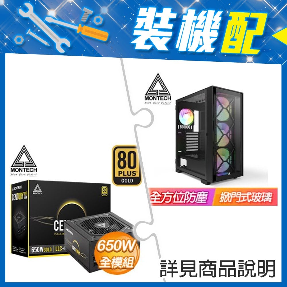☆裝機配★ MONTECH【AIR 1000 LITE】玻璃透側 ATX機殼《黑》+MONTECH 創世紀 650W 金牌 全模組