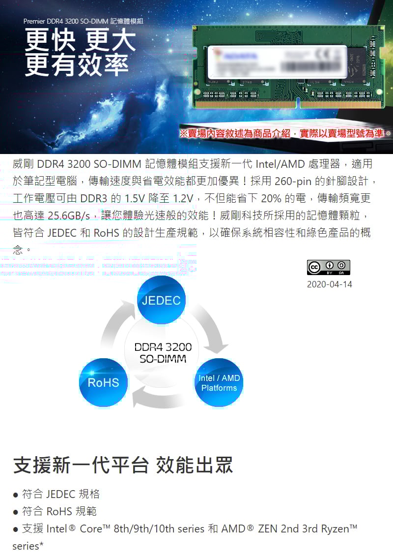 ADATA 威剛 DDR4-3200 16G 筆記型記憶體(2048*8)