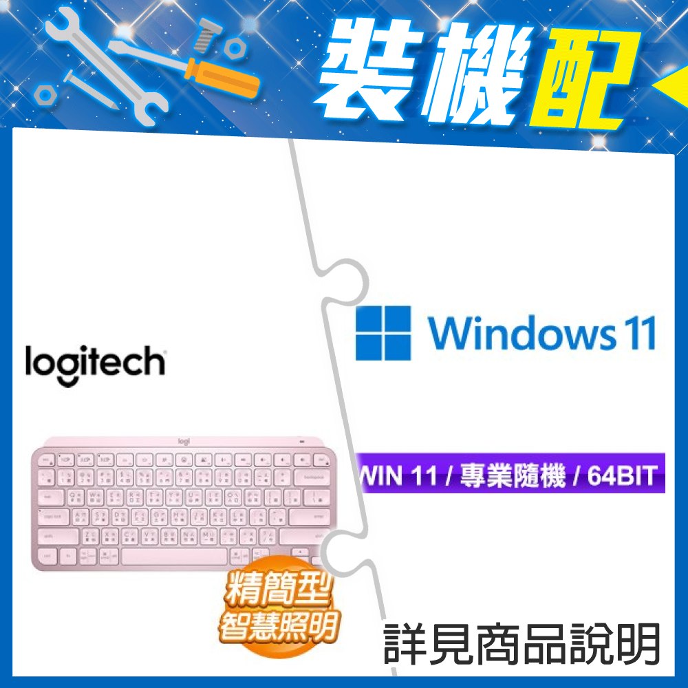☆裝機配★ Windows 11 Pro 64bit 專業隨機版《含DVD》+羅技 MX KEYS Mini無線藍芽背光鍵盤《玫瑰粉》