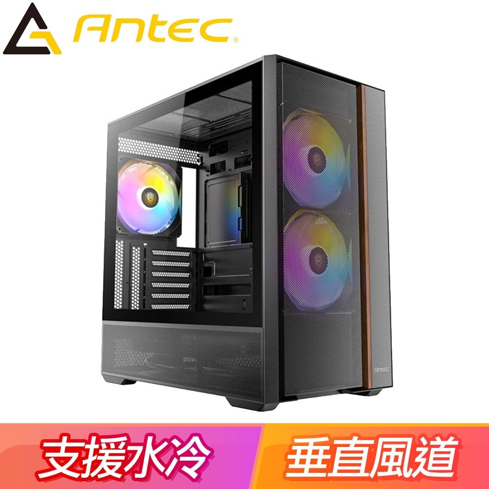 Antec 安鈦克【FLUX REAR(B)】實木飾條 玻璃透側 ATX機殼《黑》(顯卡40/CPU高18)