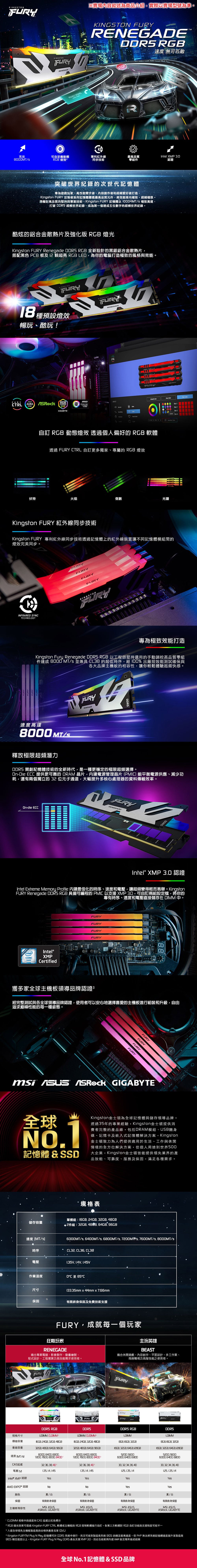 Kingston 金士頓 FURY Renegade RGB 反叛者 DDR5-6400 16G*2 CL32 桌上型超頻記憶體(KF564C32RSAK2-32)