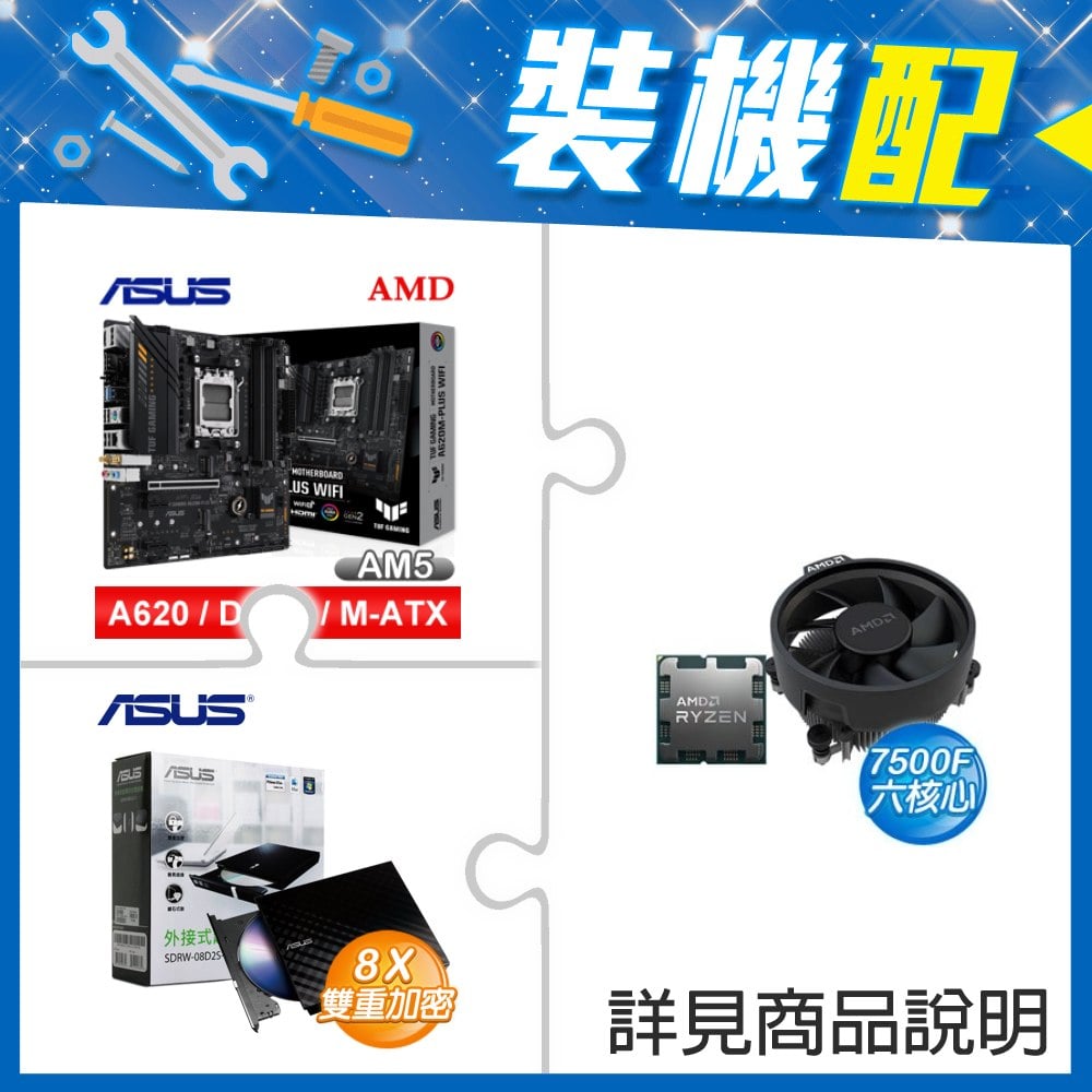 ☆裝機配★ AMD R5 7500F+華碩 TUF GAMING A620M-PLUS WIFI MATX主機板+華碩 SDRW-08D2S-U 外接式燒錄機《黑》
