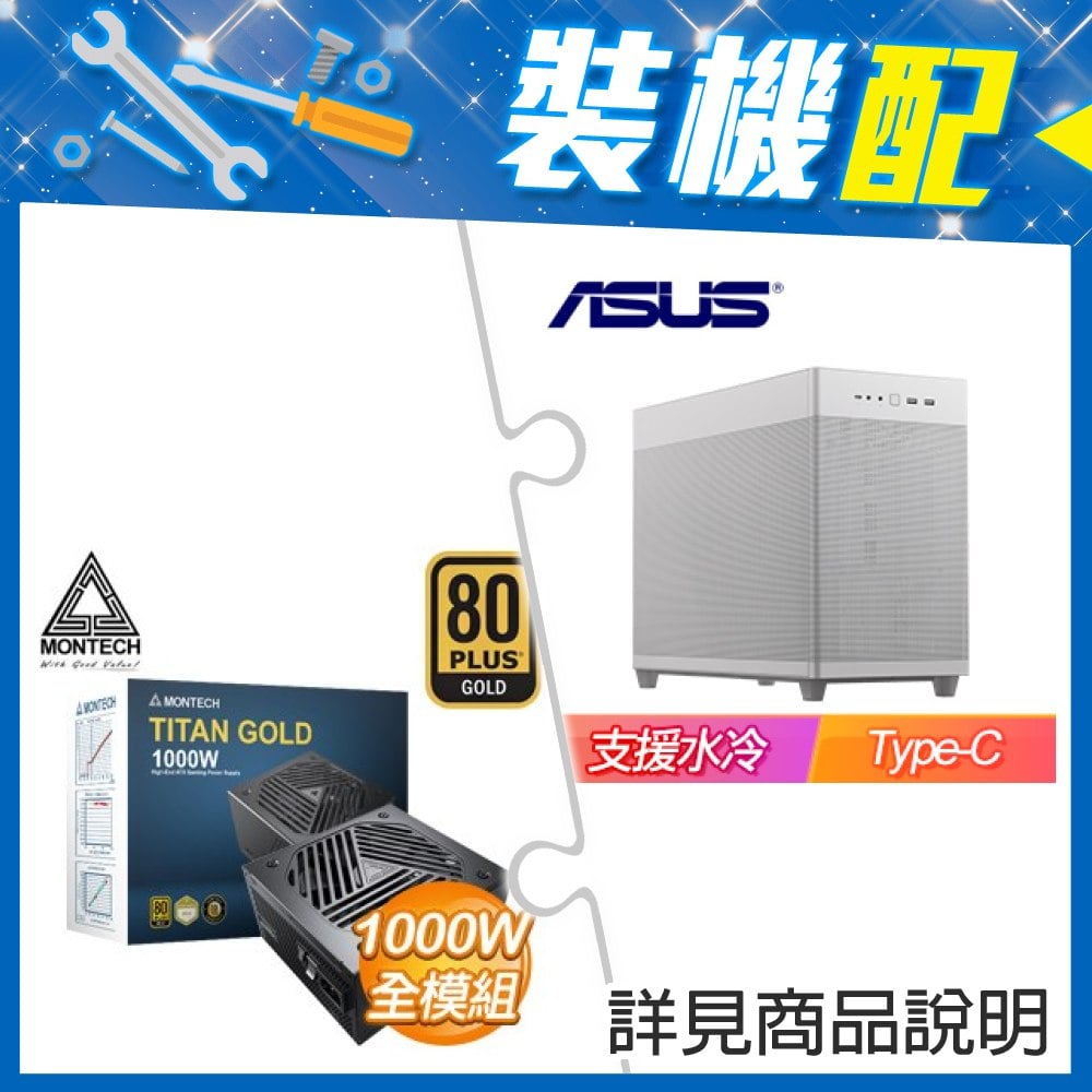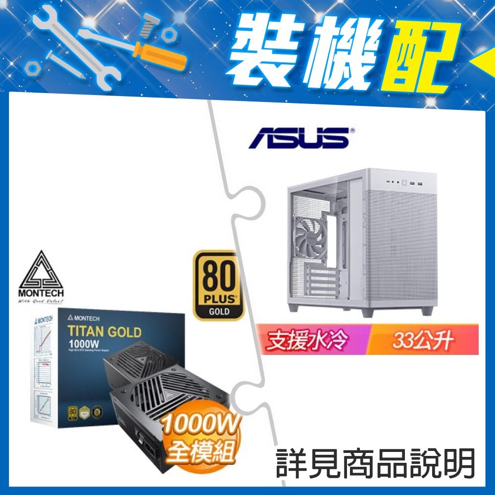 ☆裝機配★ 華碩【Prime AP201】玻璃透側 M-ATX機殼《白》+MONTECH TITAN GOLD 1000W 金牌 全模組 ATX3.0(PCIe 5.0)