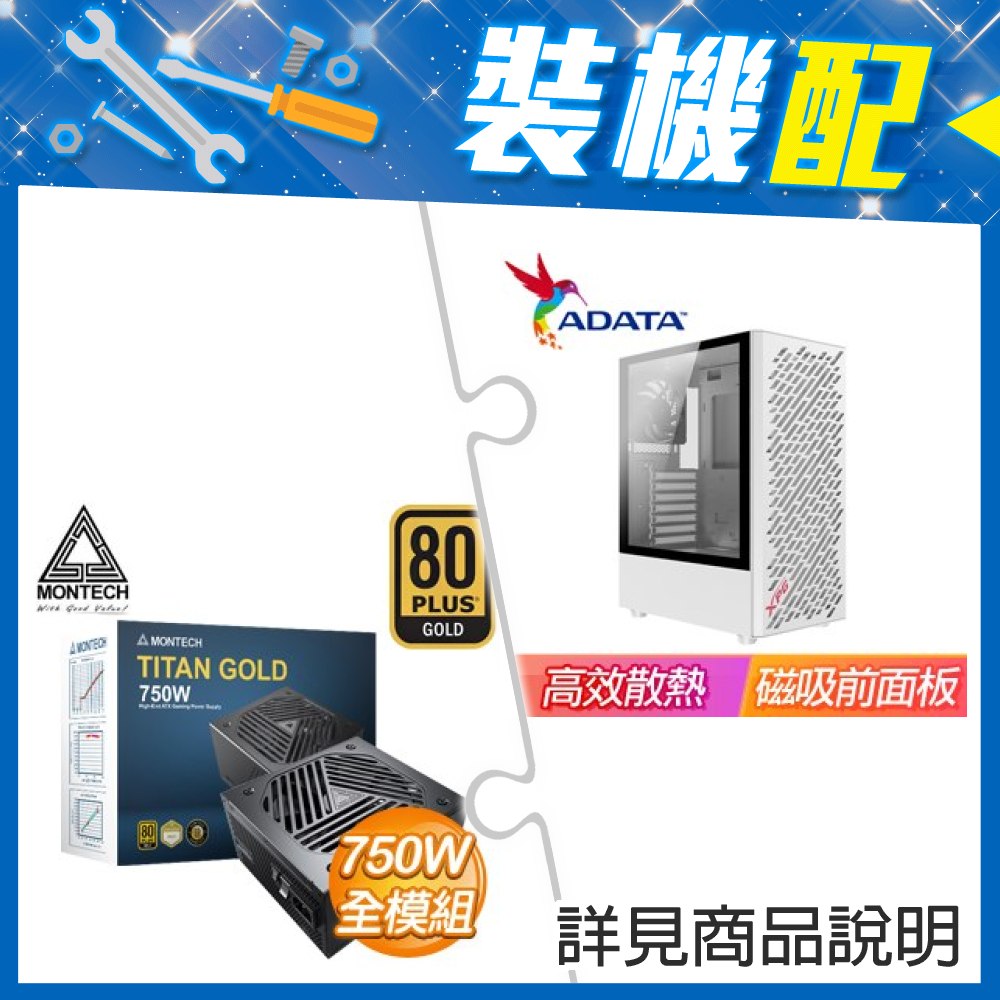 ☆裝機配★ 威剛【XPG VALOR AIR】玻璃透側 ATX中塔電競機殼《白》+MONTECH TITAN GOLD 750W 金牌 全模組 ATX3.0(PCIe 5.0)