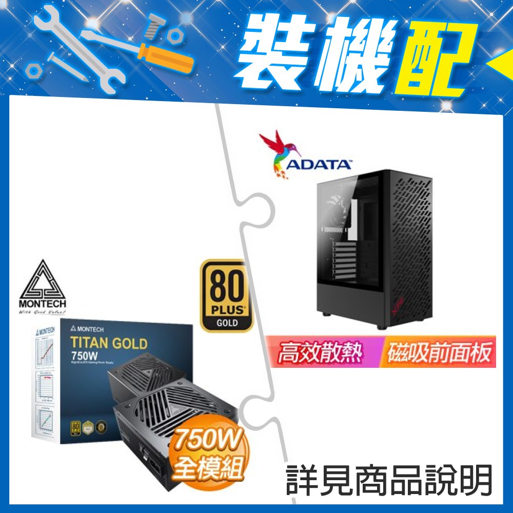 ☆裝機配★ 威剛【XPG VALOR AIR】玻璃透側 ATX中塔電競機殼《黑》+MONTECH TITAN GOLD 750W 金牌 全模組 ATX3.0(PCIe 5.0)
