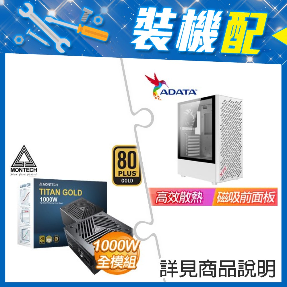☆裝機配★ 威剛【XPG VALOR AIR】玻璃透側 ATX中塔電競機殼《白》+MONTECH TITAN GOLD 1000W 金牌 全模組 ATX3.0(PCIe 5.0)
