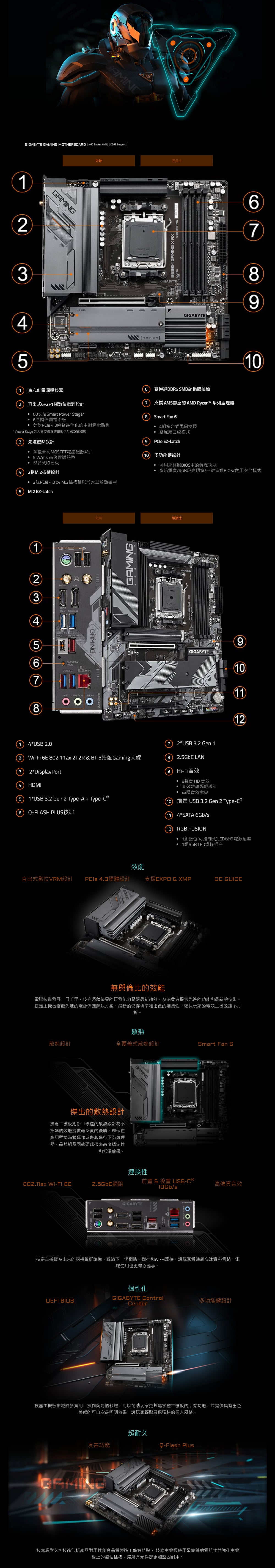 - AMD Socket AM5腳座設計:支援 AMD Ryzen™ 7000 / Ryzen™ 8000 / Ryzen™ 9000 系列處理器