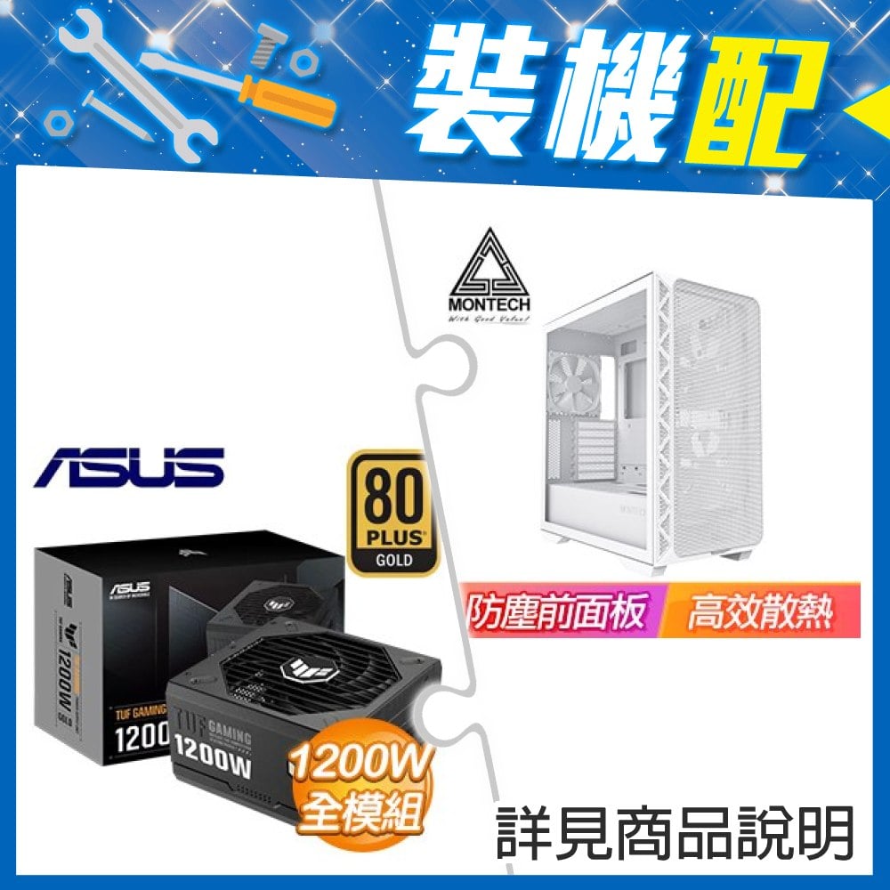 ☆裝機配★ MONTECH【AIR 903 MAX】玻璃透側 E-ATX機殼《白》+華碩 TUF GAMING 1200G 金牌 全模組 ATX3.0(PCIe 5.0)