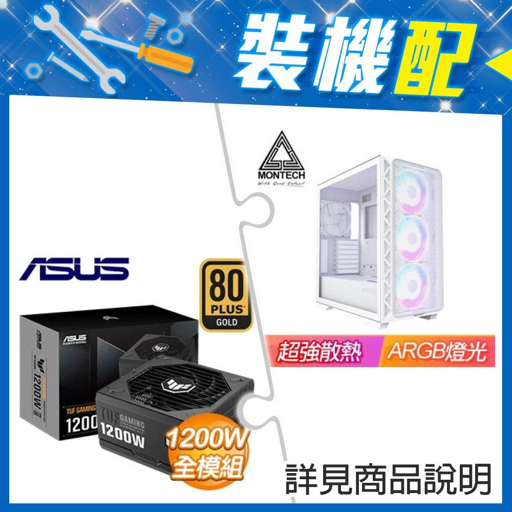 ☆裝機配★ MONTECH【AIR 903 BASE】玻璃透側 E-ATX機殼《白》+華碩 TUF GAMING 1200G 金牌 全模組 ATX3.0(PCIe 5.0)