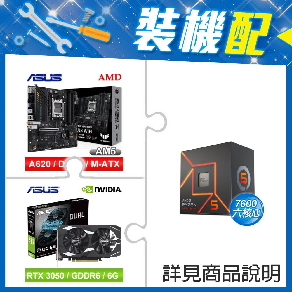 ☆裝機配★ AMD R5 7600+華碩 TUF GAMING A620M-PLUS WIFI MATX主機板+華碩 DUAL-RTX3050-O6G 顯示卡