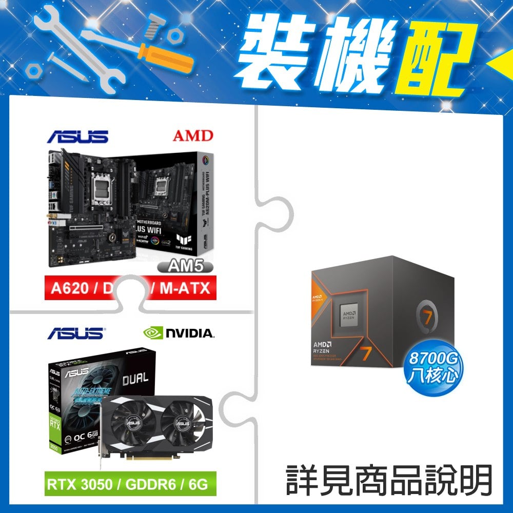 ☆裝機配★ AMD R7 8700G+華碩 TUF GAMING A620M-PLUS WIFI MATX主機板+華碩 DUAL-RTX3050-O6G 顯示卡