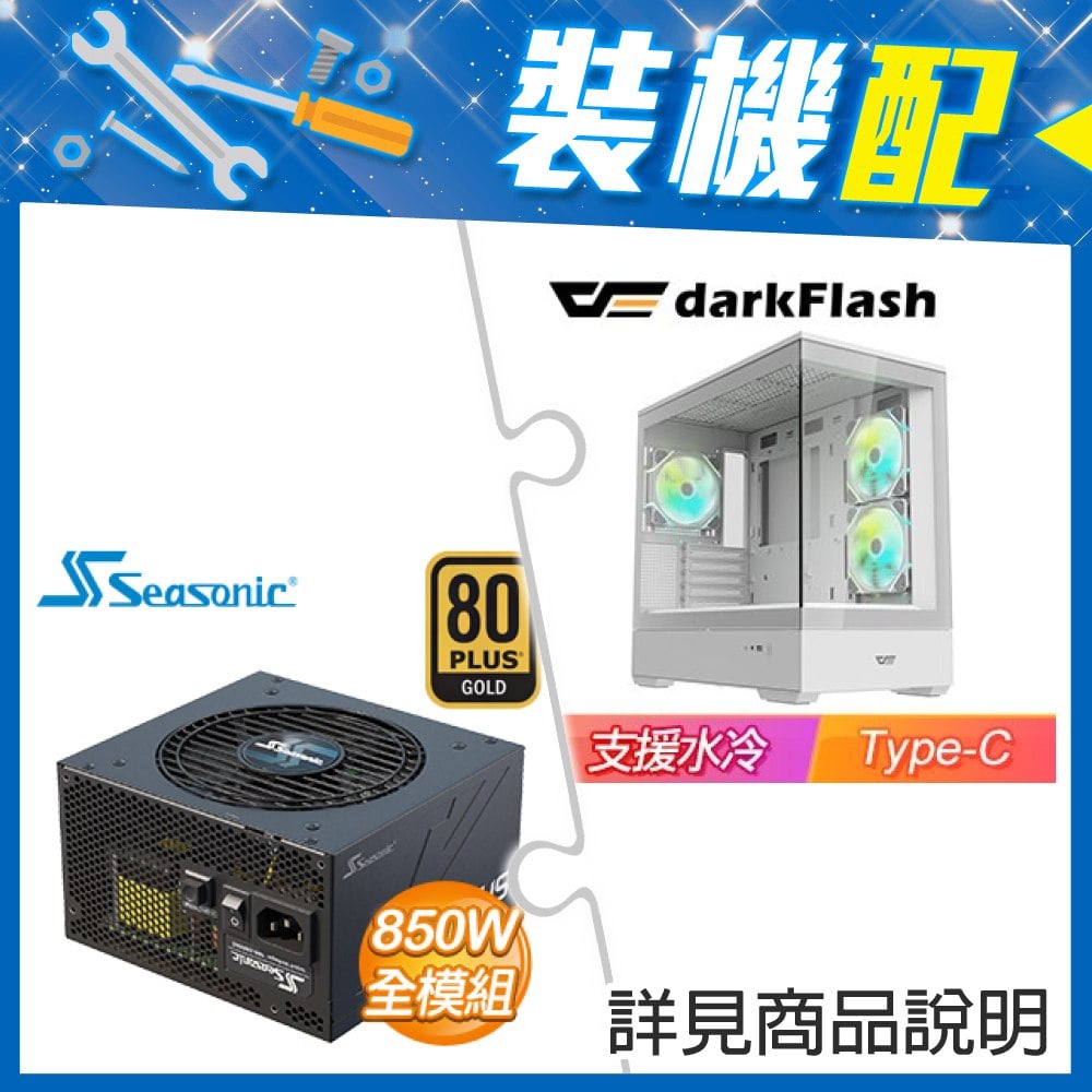 ☆裝機配★ darkFlash【MOTI 鏡之島】全景玻璃 M-ATX機殼《白》+海韻 Focus GX-850 850W 金牌 全模組