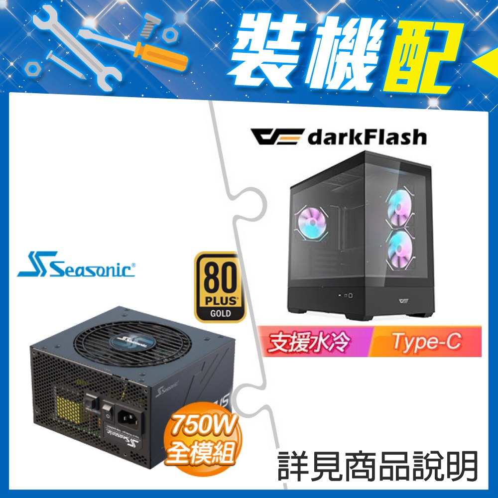☆裝機配★ darkFlash【MOTI 鏡之島】全景玻璃 M-ATX機殼《黑》+海韻 Focus GX-750 750W 金牌 全模組