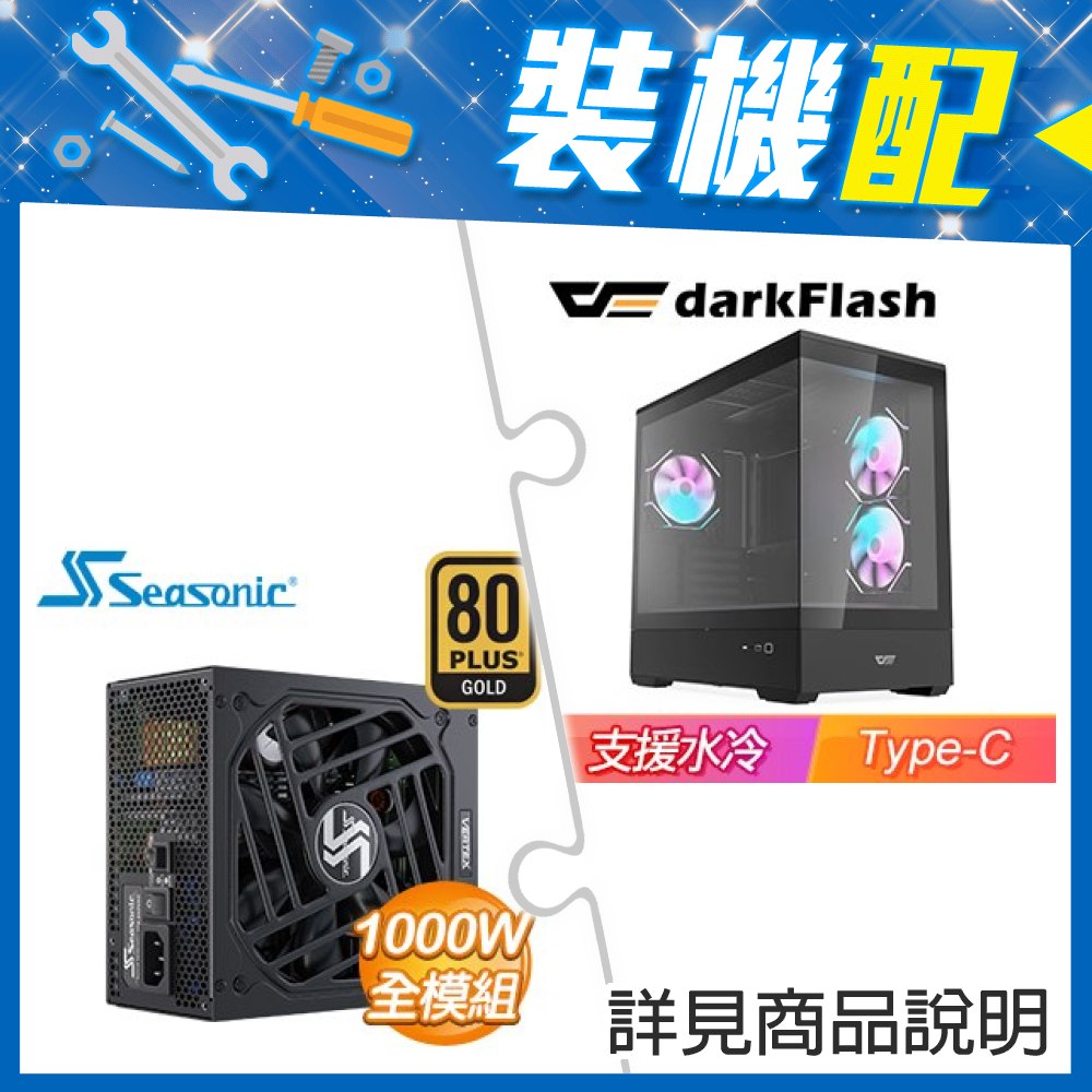 ☆裝機配★ darkFlash【MOTI 鏡之島】全景玻璃 M-ATX機殼《黑》+海韻 Vertex GX-1000 金牌 全模組 ATX3.0