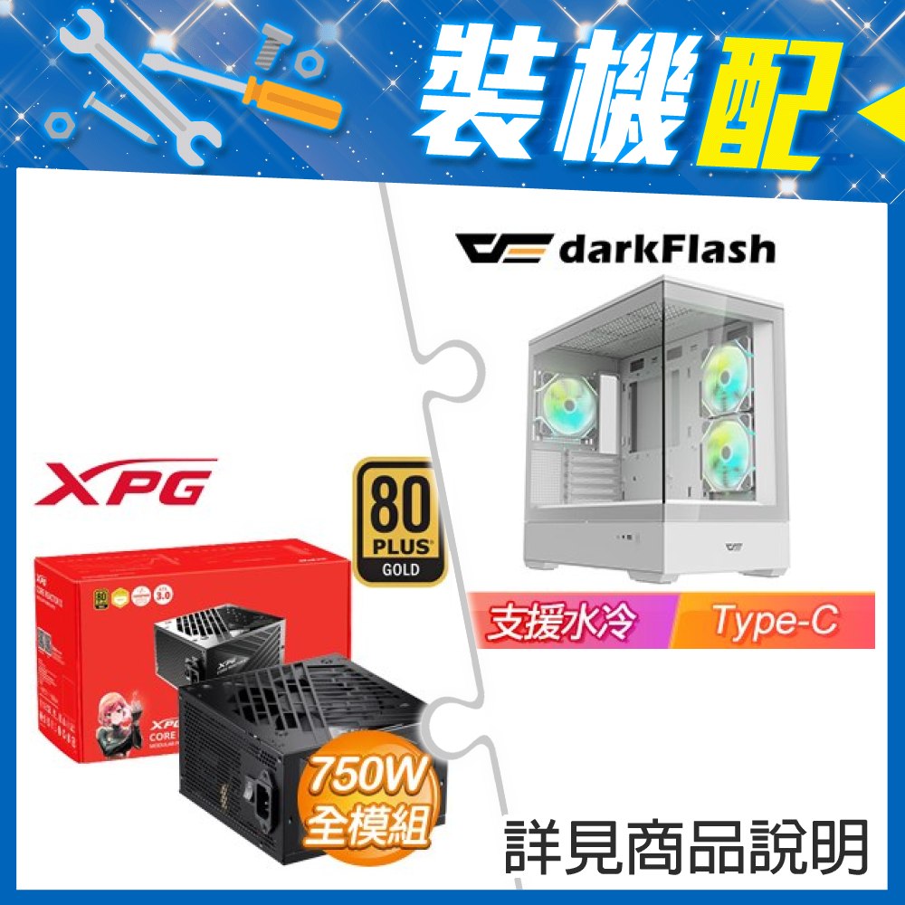 ☆裝機配★ darkFlash【MOTI 鏡之島】全景玻璃 M-ATX機殼《白》+威剛 XPG CORE REACTOR II 750W 金牌 全模組 ATX3.0(PCIE 5.0)