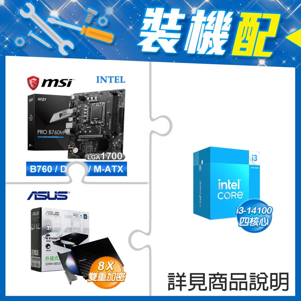 ☆裝機配★ i3-14100F+微星 PRO B760M-E D5 MATX主機板+華碩 SDRW-08D2S-U 外接式燒錄機《黑》