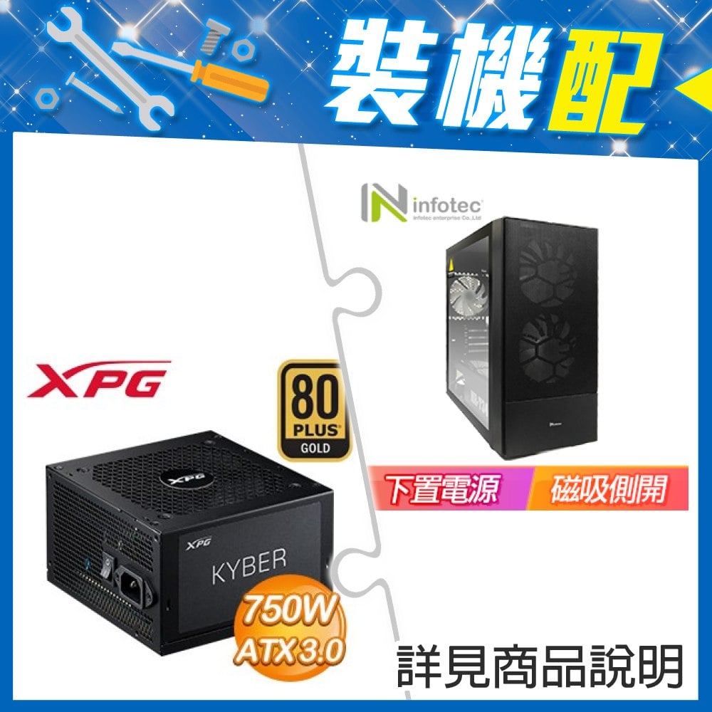 ☆裝機配★ 英富達【MR-T34】玻璃透側 M-ATX機殼《黑》+威剛 XPG KYBER 750W 金牌 ATX 3.0(PCIE 5.0)