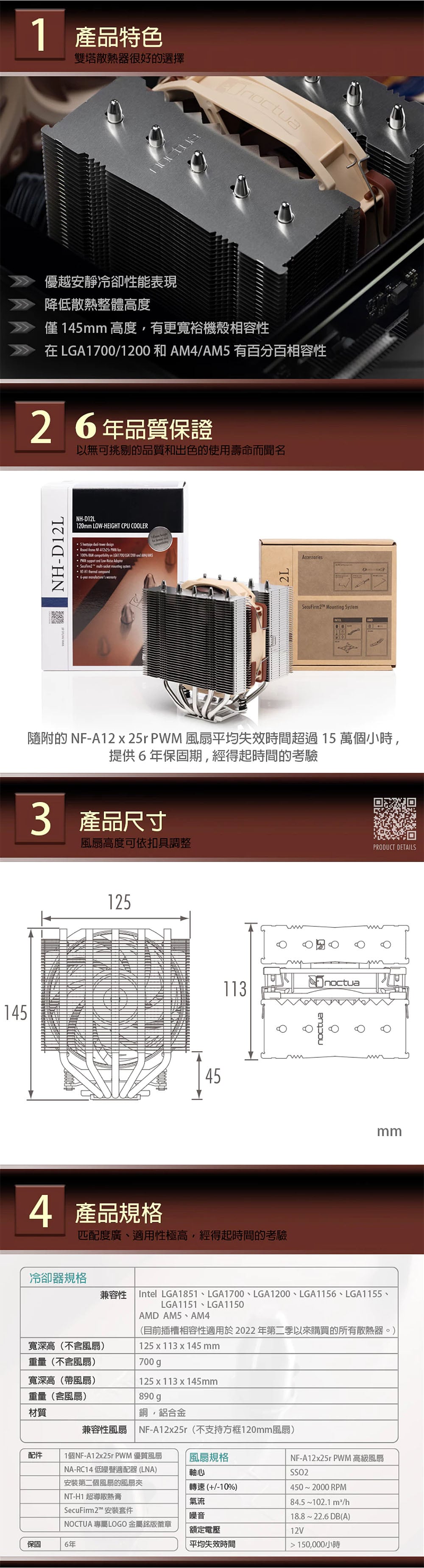Noctua 貓頭鷹 NH-D12L 非對稱雙塔五導管 靜音CPU散熱器