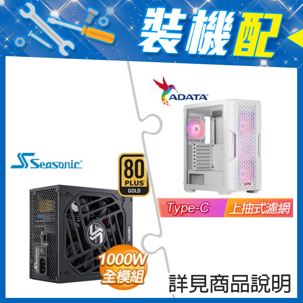 ☆裝機配★ 威剛【XPG STARKER AIR C】玻璃側板 ATX電競機殼《全白》+海韻 Vertex GX-1000 金牌 全模組 ATX3.0